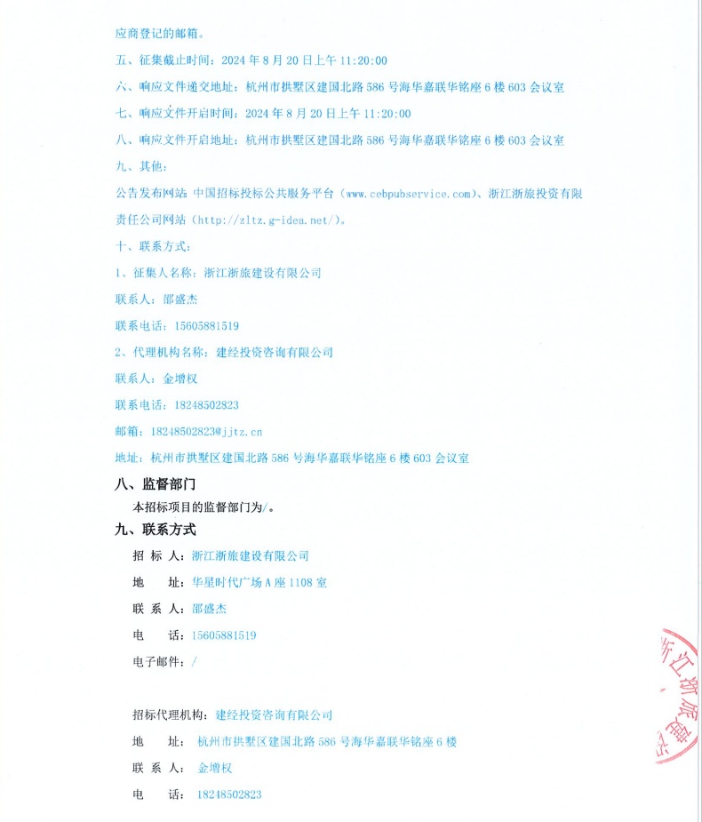 浙江浙旅建設(shè)有限公司分供商庫(kù)(智慧旅游)補(bǔ)充征集公告