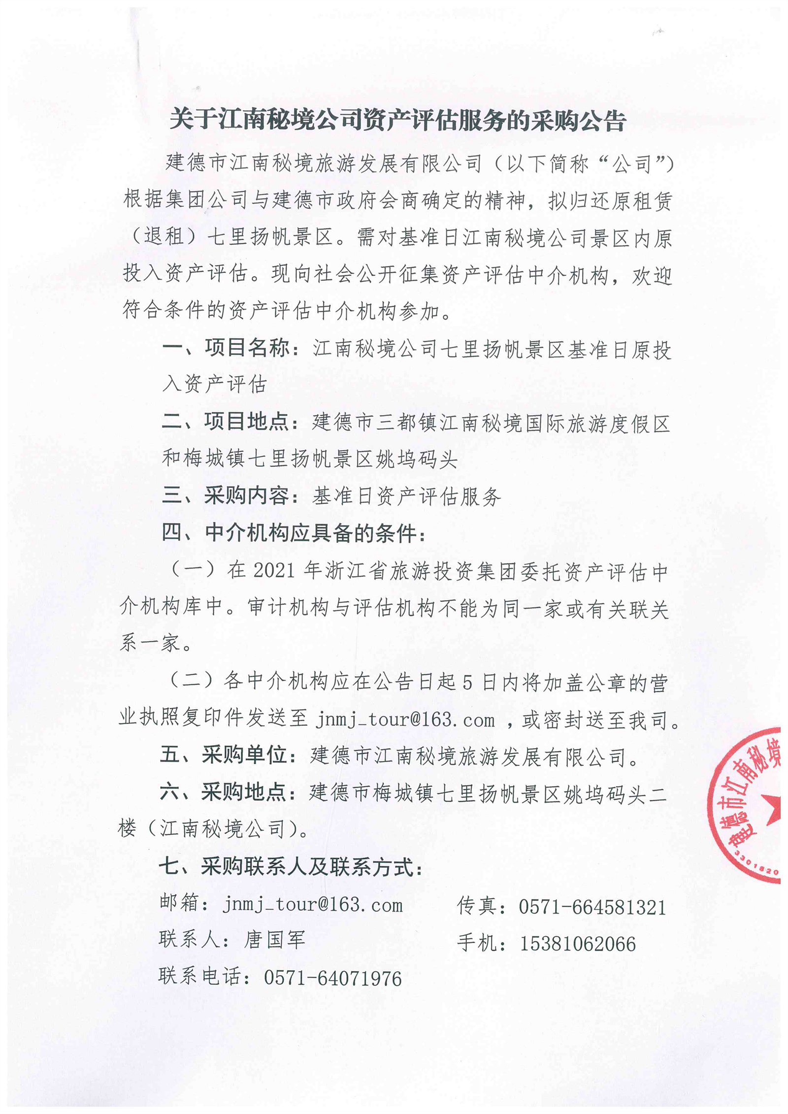 關(guān)于江南秘境公司資產(chǎn)評(píng)估服務(wù)的采購(gòu)公告